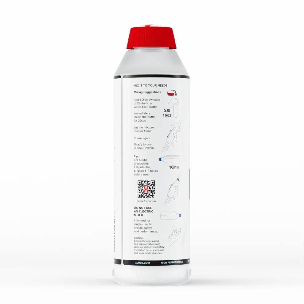 One 100gr bottle of XLube powder makes 20+ litres of odourless lubricant. Simply add the powder to water in a typical sports bottle, shake well, wait a short time, shake again and you're done. Mixing suggestions (in multiple languages) are included with each bottle together with an XLube Fan-Sticker.