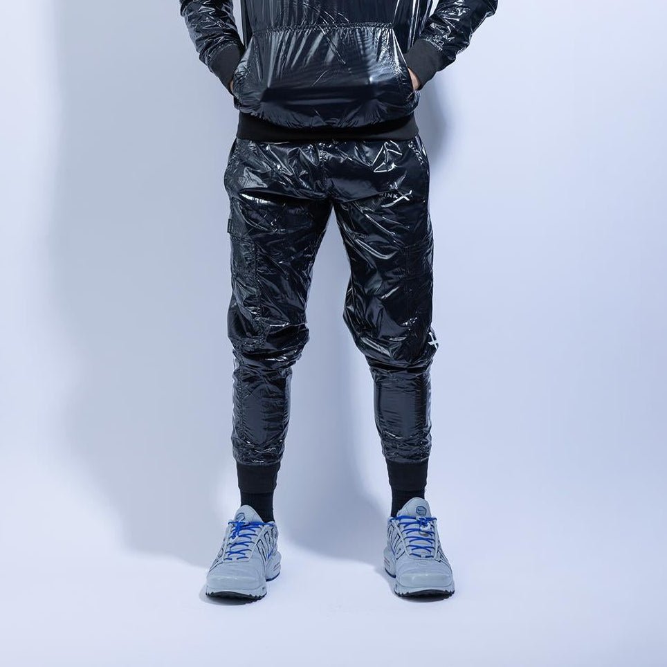 The shiny Nylon material of these pants ignites your senses, providing a tantalizing and provocative feel against your skin. With their stylish cargo pockets and bold logos, these pants become an emblem of your unique style and undeniable confidence. The construction ensures durability, allowing you to indulge in your boldest adventures without hesitation.